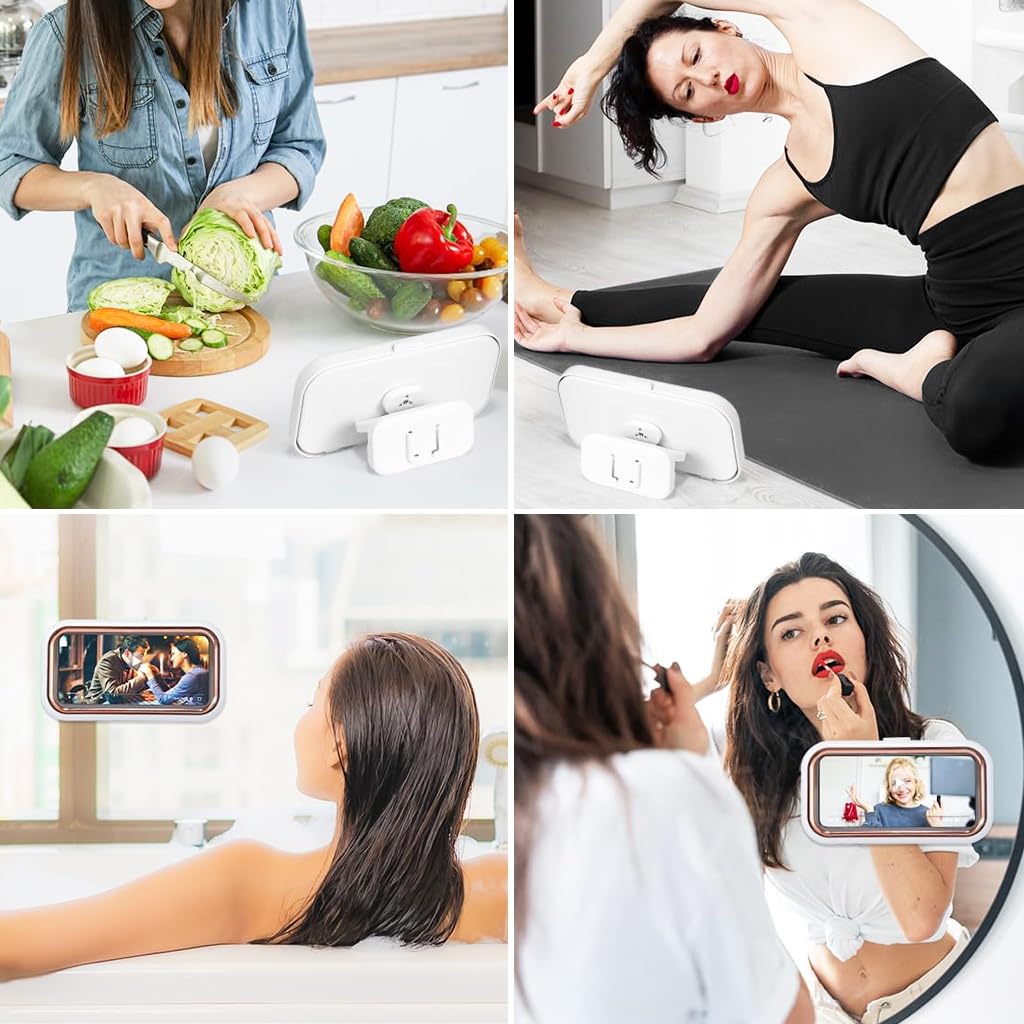 Balancing your phone on a ledge is risky. ShowerPod™ keeps your device 100% safe from splashes and steam, with full 480° rotation and responsive touch — so you can watch, scroll, or video call while relaxing in the shower or bath.