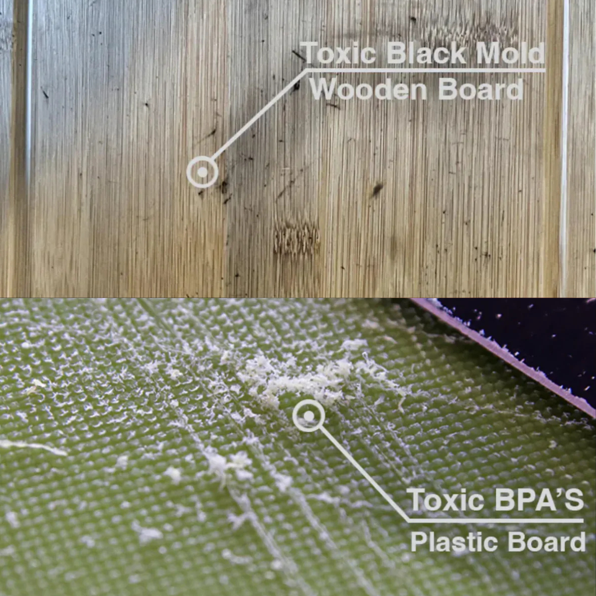 Wood absorbs. Plastic cracks. PureTitan™ stays clean always. While wood cutting boards soak up juices and breed hidden bacteria, and plastic boards develop deep grooves that trap germs, PureTitan™ stands strong. Its ultra-smooth, non-porous titanium surface blocks mold, germs, and odors from ever taking hold.