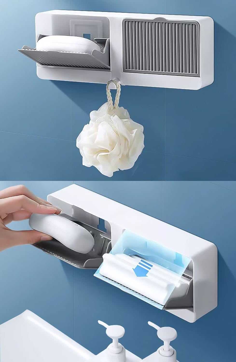 Tired of mushy, melting bars of soap and the mess they leave behind? SoapSmart™ DualShield Holder is your simple solution! Featuring a flip-lid design, dust-proof cover, and smart drainage, it blocks water and keeps your soap dry, clean, and ready for every wash.